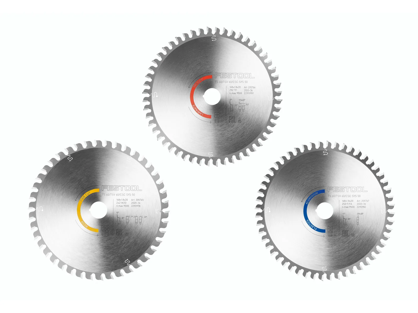 Vertingas paketas darbui su skirtingomis medžiagomis: „Multi-Material“ rinkinys yra toks universalus ir įvairiapusis, kokio ir reikia dirbant su daugybe medžiagų. Į jį įeina trys skirtingi pjovimo diskai, skirti išskirtiniams rezultatams pasiekti dirbant su mediena, laminatu ir melamino derva klijuotoms plokštėmis bei aliuminiu ir plastiku.