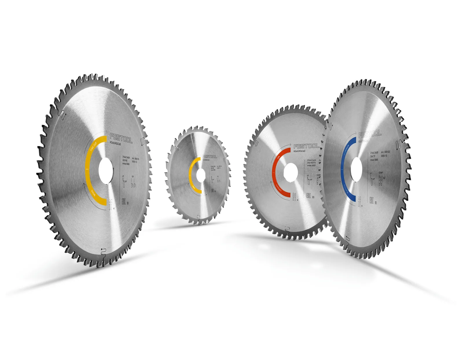 Optimaliai vieni su kitais suderinti sistemos komponentai užtikrina lėtą dėvėjimąsi ir ilgą tarnavimo laiką: tobulas pjovimo diskų tarpusavio suderinimas su traukiamu skersinio pjovimo pjūklu KS 60 ir akumuliatoriniu traukiamu skersinio pjovimo pjūklu KSC 60